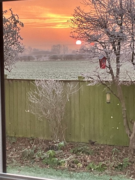 Good morning from avery chilly but sunny Suffolk. Our garden looks like a scene from a Christmas card. No sign of the fog forecast yesterday.