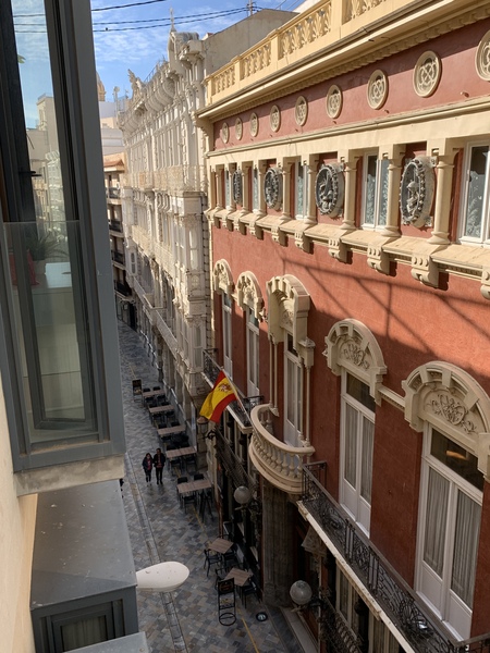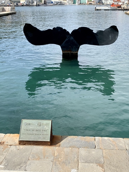 Another lovely day here, this morning we went on a boat trip around the harbour and then we had a lazy afternoon sat in one of the Plazas watching the world go by. We’re just back to the apartment after a wander around the town after dark as I wanted to see the illuminated monuments etc. The picture is the view from the apartment window looking down the street and the other is a sculpture of a Whales tail at the port