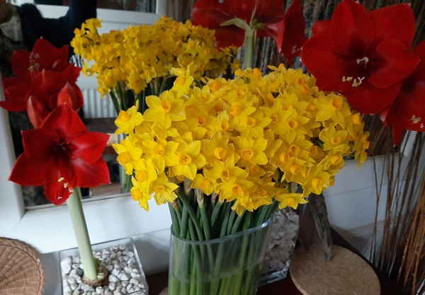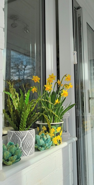 A few days ago I bought two bunches of the £1 daffodils that are sold from a box in tight buds. This morning I came downstairs to the magical scent of daffodils - they have blossomed. Looking outside, the daffs under the cherry tree are beginning to grow, and then I spotted snowdrops in the wet, cold earth that have come up overnight it seems. What an unexpected and lovely start to a grey , chilly Sunday. Gransnetters, I hope you all find something today to lift your heart. x