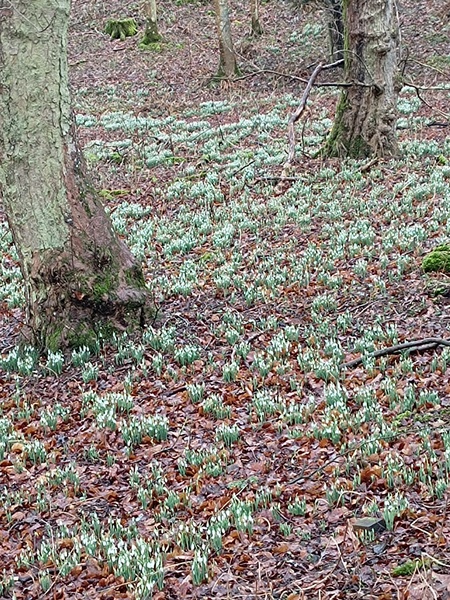 Here are some snowdrops from yesterday's walk. Flur beag geal or little white flowers in Gaelic. Daffodils are the plant with the bent head