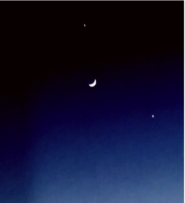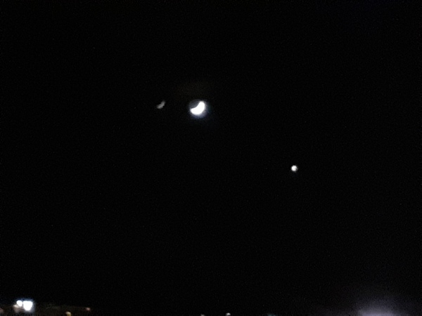 Last night’s clear sky gave us a good view of the moon with Jupiter and Venus.