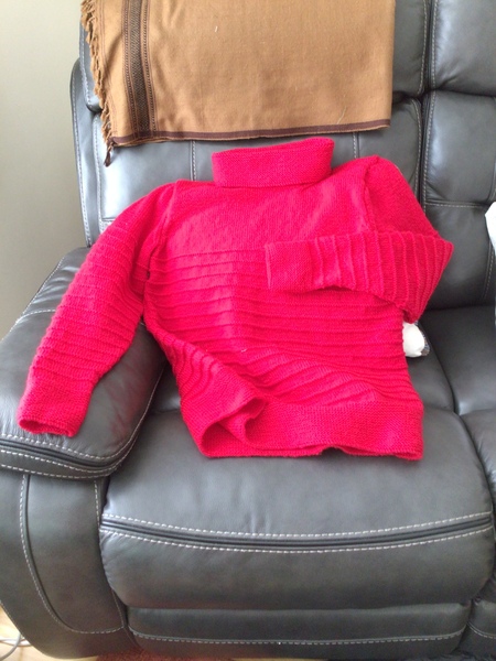 I have finished my jumper, but it is more tomato’s coloured than in the photo.