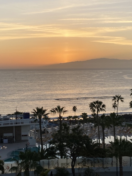 All of you in cold rainy UK won’t want to hear that it’s very pleasantly warm and sunny in Tenerife. We went out for fishy things at lunchtime, including tentacles and lots of garlic, then lazed by the pool.