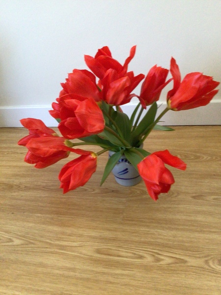 The gardener came unexpectedly yesterday and emptied the pots to be taken, so I cut the tulips. They were looking particularly pretty.