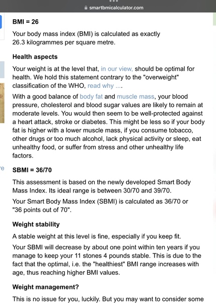 Here is a link to the smart BMI site.I’m bang in the middle or Low 😮. There I have been beating myself up for being overweight.