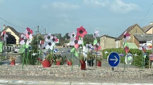 The photo shows a roundabout near here, regularly decorated to reflect the time of year.