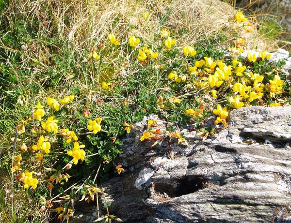 We took a photo of the imposing island of Arran from the beach at Skipness. From Skipness there is a small ferry that takes cars to the island. The crevices in the rocks bordering the narrow road were festooned with wild flowers. Nature is amazing.