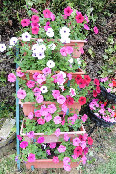 Mirren, I have one of those 5 tier planters. It will soon disappear beneath the Tidal Wave Petunias. The same will soon happen with my patio pots.