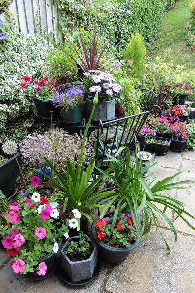 Such lovely gardens! Mine is a mess at the moment, as we have taken away our old raised fishpond (the liner cracked) and are in the process of decking over the whole patio to cover the rubble patch where it used to be. However it is too hot for DH to do much each day so it is dragging on. The top part of the garden is going wild because I can't get to it!
