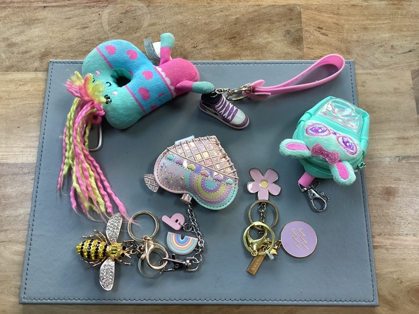 Not only little girls FGT! Attached to my backpack I have a little yellow plush dog, an Eeyore and a tiny sad mouse someone left on their doorstep. Plus a keyring memento of a trip to St Michael's Mount. (My excuse is that they make it easier for my arthritic hands to use the zips. π)