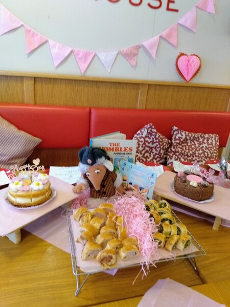 It was Womble cuppa and chat yesterday and themed for mother's day. The picture is missing the hot buttered toast and you can't see the feta and spinach rolls . Good job I had sit fit class afterwards.