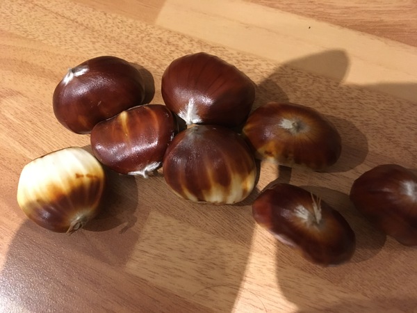 I adore chestnuts, when I was a child in '50 & '60s we used to roast them on the front of the coal fire, balancing them was an art, too far in they were lost or burnt. I once had them as a dessert, Marron Glacé, at the Goring In London, like eating sweet velvet. But now they are dry, tasteless and sometimes rotten. I know my palette is blunted by age but when one considers how far they had to travel all those years ago, how transport is speedier now surely their condition should be as good as I remember them ?