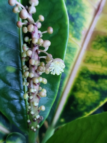 I have woken this morning to my Croton opening the first flower of her SECOND blooming!! I have never had a Croton before and apparently flowering is quite rare to start with so I'm very excited she's decided to keep going.