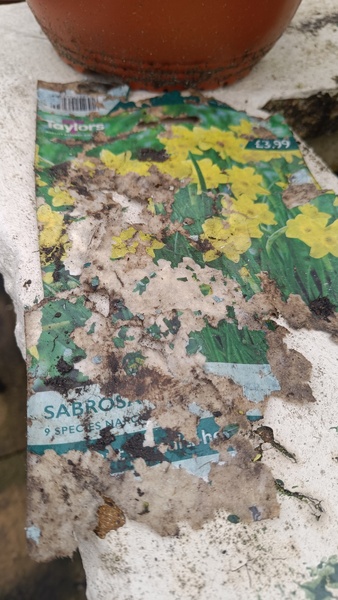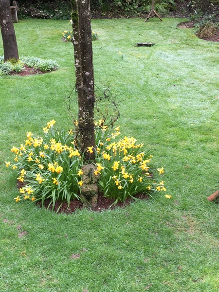 I'd forgotten what I'd planted in a small pot last autumn so it's's been a delight today seeing these tiny daffs which have emerged all of a sudden. They are no more than 1/2 inch across and I have no idea what their name is. They are definitely not tete-a-tete. I have those labelled and are bigger than these little babies. I've attached a photo to show the miniature on the left and daffs on the right are about 8 inches high. One of life's little pleasures and they make me smile every time I pass them.