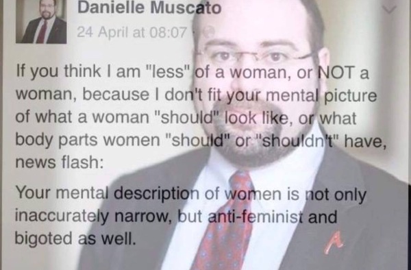 Looking at it another way, let's suppose it becomes commonplace to see transwomen like Alex Drummond and Danielle Muscato in female changing rooms and toilets, taking part in sports, applying for scholarships etc that were set up for girls and women.